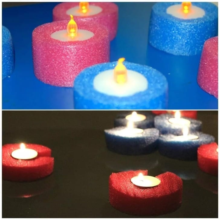 If you ever desire to embellish your pool for a special occasion, you have the option of using candles and pool noodles. Simply encircle the candles with pool noodles and position them on a foundation of pool noodles. These do-it-yourself ornaments may then be placed atop the water in the pool. These decorations will remain afloat and the flickering candles will create a memorable visual experience. Moreover, they are a highly secure form of embellishment as the pool water serves as a safeguard against any significant fire hazards.