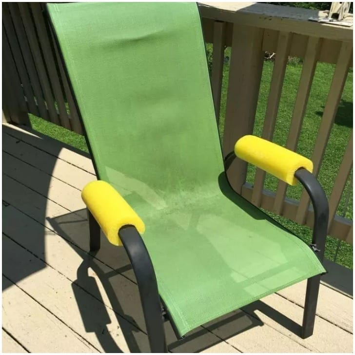 Are there any old chairs in your home that require cushioning? You can use pool noodles to alter these chairs. Simply cut a pool noodle into two equal pieces and wrap them around the chair’s arms, creating comfortable hand rests. Additionally, you can connect different pool noodles together to form a suitable seating and back cushion for the chair. To maintain an aesthetically pleasing appearance, ensure that all cushions are of the same color.
