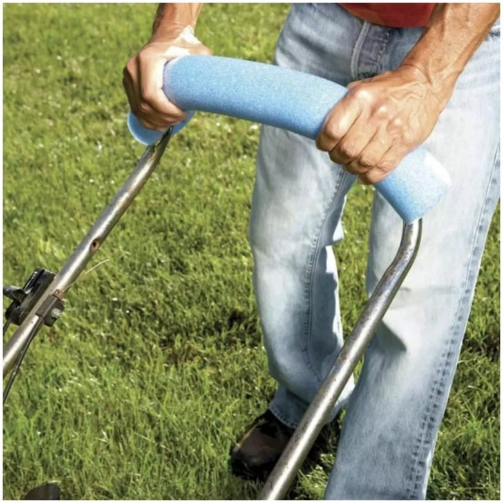 Using a lawn mower can be quite unpleasant at times, particularly when it is positioned in your yard directly under the intense heat of the sun. The metal handle has the potential to emit heat that can result in burns on your hands. To enhance the comfort and grip of the lawn mower, consider utilizing pool noodles to cover and cushion the handle. This simple modification will greatly enhance the functionality of the lawn mower by providing an improved grip.