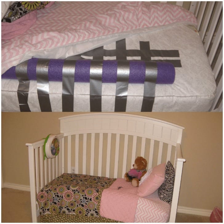 If you want your baby’s crib to be extra safe for naptime or any other times when they are resting their head down, use pool noodles as padding. Babies are curious and they often want to poke things that can be harmful for them, especially ones near the crib- like a cord or power outlet. This is why they may try to get out of their crib. So it is very important for the baby’s safety that you pad the sides of the crib so that not only does the crib become more safe and comfortable for the baby but also so that the baby cannot leave his/her crib that easily.