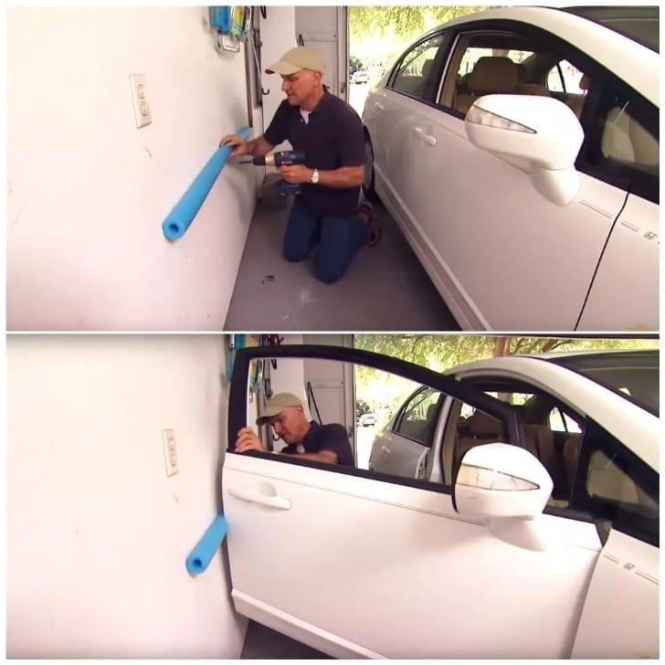 After a long and comfortable journey, you finally arrive home and park your car in the garage. However, when you open the car door, it accidentally strikes the side wall, causing damage to your vehicle. Although it may not appear to be a major issue, many individuals encounter this problem, particularly if they have limited garage space. Such situations can be quite stressful, but there is a solution: by lining the walls of your garage with pool noodles, you can effectively protect your car from scratches and damage if the car door happens to come into contact with the pool noodles.