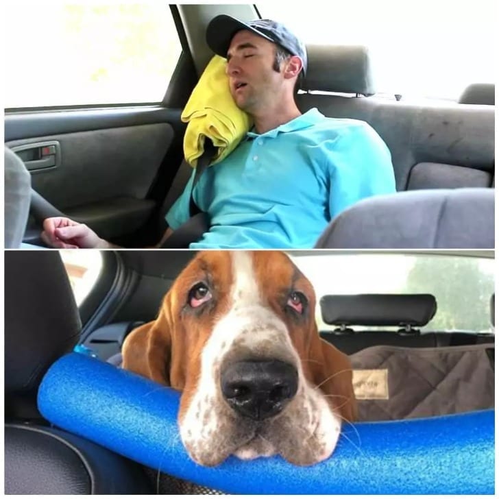 Pool noodles are used to create a car headrest that is both comfortable and supportive.
