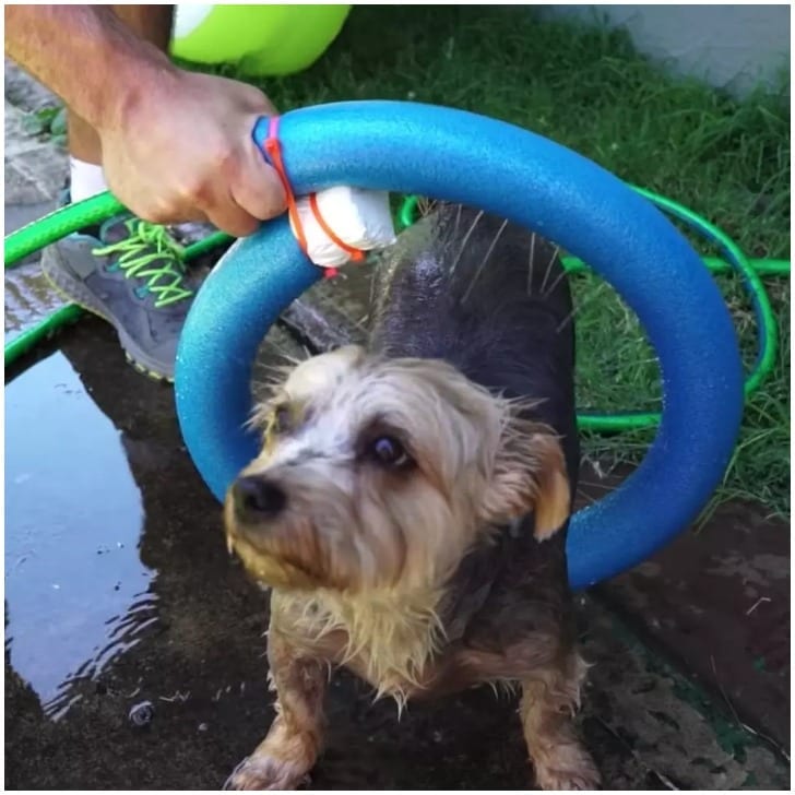 It seems that the best way to shower a pet is by converting an old pool noodle into their own personal swimming head. It’s easy and it cleans up every inch of them in one go. To make your pup’s bathing experience even better, add some pressure-boosting water for more thorough cleaning. All you have to do is poke some holes in the pool noodle and block it from one end while inserting a water pipe in the other end and voila! Your showerhead is ready.