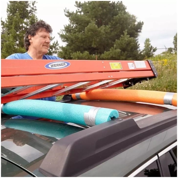 People often want to protect their cars, but it’s never enough – there will always be dents that cannot be avoided. The most vulnerable area for dents would probably be its roof. The top of the car usually takes all the brunt from luggage and other heavy objects being lashed on top of it by passing travelers such as yourself or others in your group who have been less careful about packing light for this trip. One way you can avoid denting up the roof when loading these things onto your trunk space: use pool noodles to cushion them instead.