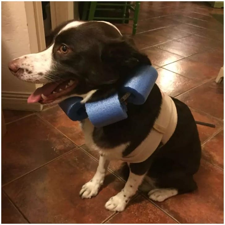 Pool noodles can be used as an alternative to dog cones however they can be made to look much more stylish and more functional than dog cones. You can also use a pool noodle as a dog collar. It’s water-resistant, durable and can be molded to just the right size to fit around your pup. Plus it is super cheap so you don’t have to worry about having another item in your house that will eventually need replacing. They are soft and comfortable and will make your dog fall in love with you.