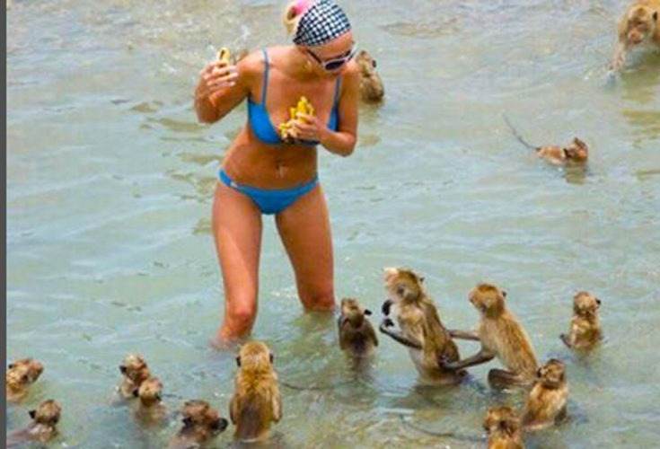 When you visit the beach, your primary worry is likely the possibility of seagulls snatching your food. However, this woman had to be cautious about monkeys, which present a greater danger despite their adorable appearance. Surprisingly, the monkeys appeared to be quite comfortable around her. It seems that women also find pleasure in the company of playful animals.