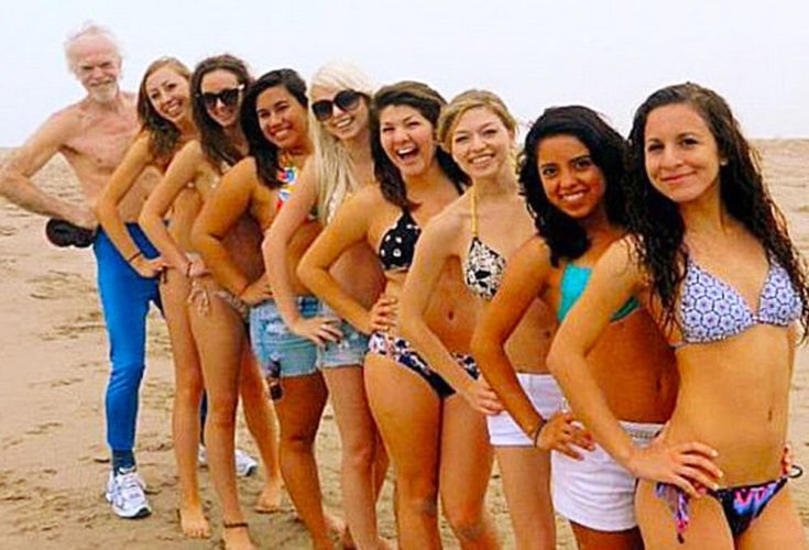 Following the overall notion of beach photobombs, it seems that this particular instance was premeditated. An arrangement of stunning young ladies encircle an elderly man who is renowned for his benevolence, intentionally positioned at the rear. The video conveys a sense of enjoyment during the photoshoot. The individual responsible for suggesting this should be commended for their imaginative abilities. I will consider attempting a similar pose with my friends when I visit the beach in the future!