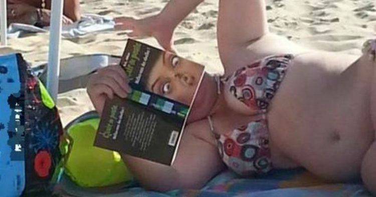 Do you prefer to bring a book or magazine to the beach so that you can spend time reading? While not, everyone would answer “Yes,” a good book is undeniably wonderful to have around when you are at the beach. On the other hand, it is not very common to see individuals reading when they are at the beach. However, suppose you plan on coming there by yourself. In that case, it is highly recommended that you bring an engaging book, just like that other woman has done. Look at the image; what an innovative and fun way to make the front cover reflect your appearance!