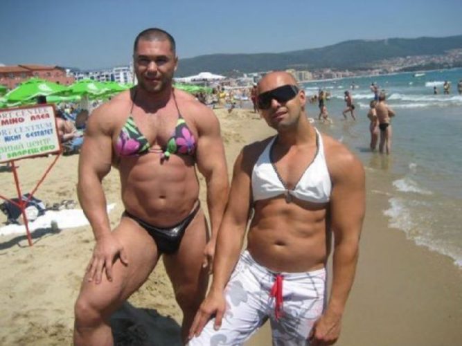 Muscular guys are a common sight at the beach; therefore, it is not surprising to run across them there. Despite this, they wore something fascinating to look at on this specific day. If they did this, they must have lost a bet, but if they didn’t, perhaps they did it because they thought it would be humorous. If the second option was correct, then what they said was accurate.